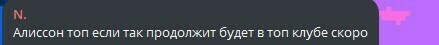 N.: Алиссон топ если так продолжит будет в топ клубе скоро.