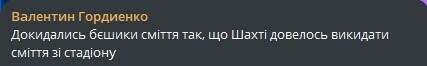 Валентин Гордиенко: Докидывались бешики мусора так, что Шахте пришлось выбрасывать мусор со стадиона.