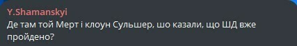Y.Shamanskyi: Где там тот Мерт и клоун Сульшер, которые говорили, что ШД уже пройден?