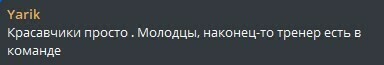 Yarik: Красавчики просто. Молодцы, наконец-то тренер есть в команде.