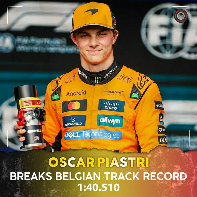 Пилот Макларена Оскар Пиастри установил новое самое быстрое время в истории квалификаций в Спа-Франкоршам, завоевав впечатляющую поул-позицию на спринте Гран-при Бельгии 2025.