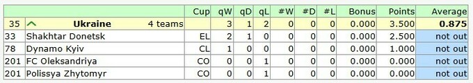 У ближайших конкурентов за эту еврокубковую неделю были следующие успехи (по сравнению с +0,500 для Украины):
