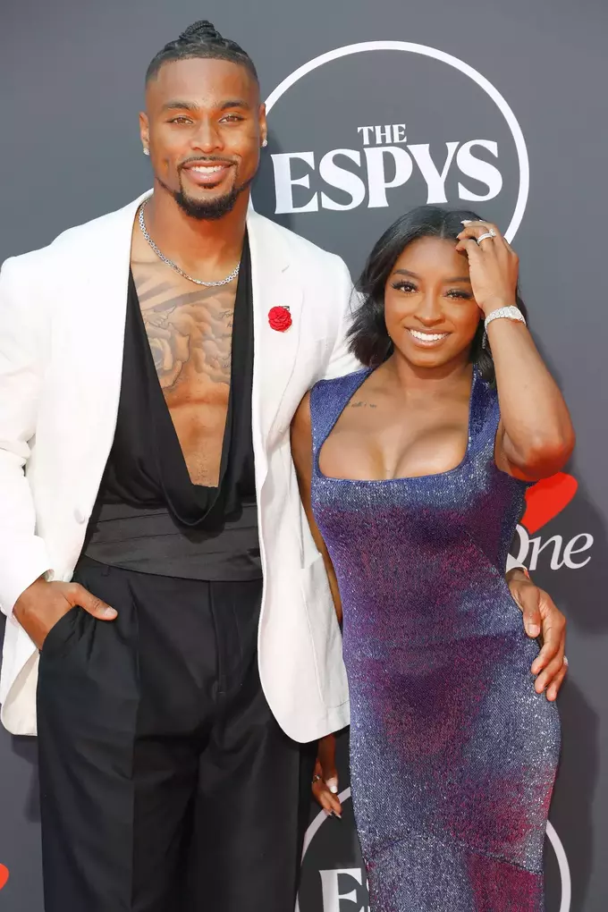 Пара сейчас на расстоянии — Оуэнс проходит тренировочный сбор с «Chicago Bears». А Байлз недавно блистала на премии ESPY в синем платье, вдохновлённом её олимпийскими образами.