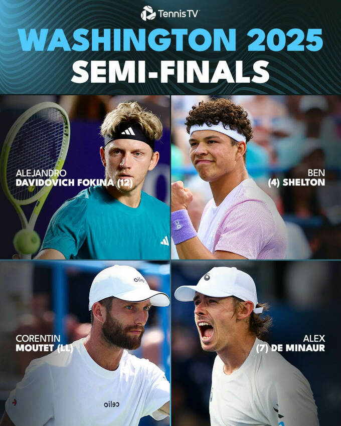 Пары 1/2 финала: Алехандро Давидович Фокина vs Бен Шелтон, Корентен Муте vs Алекс де Минаур.