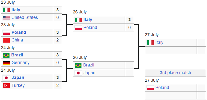 В финале Италия встретится с победителем вечернего матча Бразилия – Япония. Финал состоится уже завтра, 27 июля.