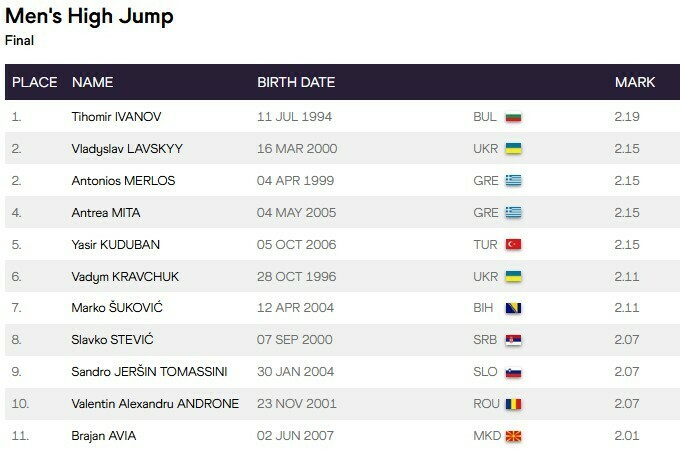 Лавский уверенно преодолел высоты 2.07, 2.11 и 2.15 м (все с первой попытки). Высота 2.19 м осталась непокоренной для Владислава. Однако украинец опередил соперников по количеству попыток и занял второе место.