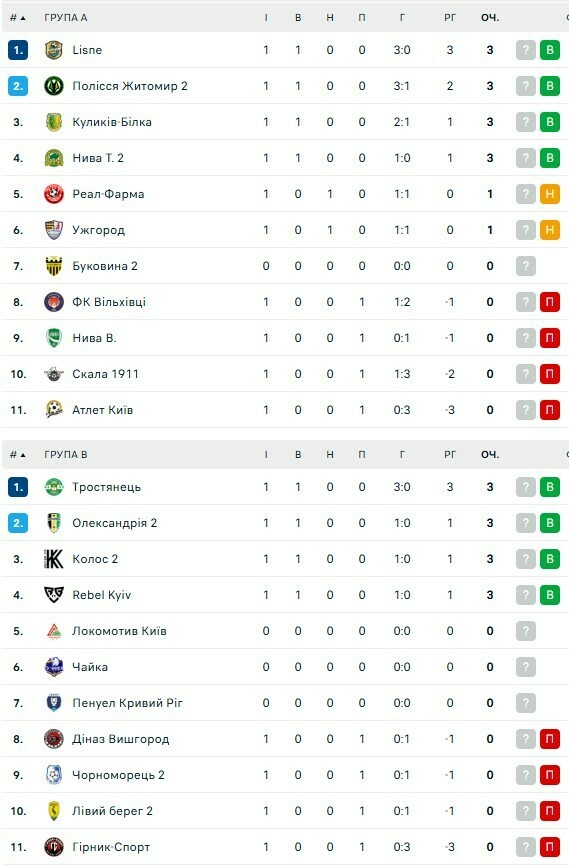 27 июля состоялись матчи 1-го тура Второй лиги чемпионата Украины