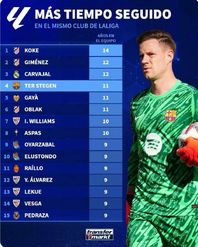 По этому поводу Transfermarkt опубликовал рейтинг игроков, которые провели наибольшее количество лет в составе клубов Ла Лиги.