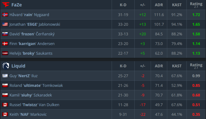 ФОТО. Статистика матча FaZe Clan против Team Liquid: