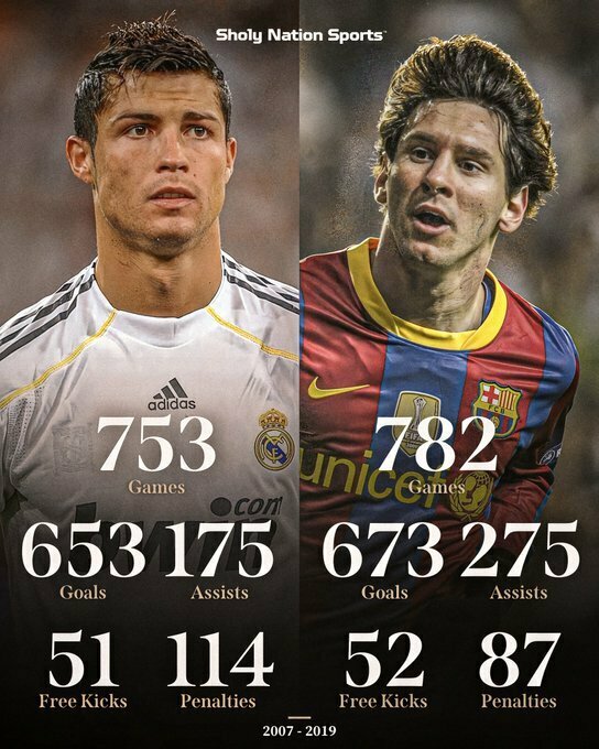 За период с 2007 по 2019 год аргентинский и португальский нападающие Лионель Месси и Криштиану Роналду продемонстрировали невероятную результативность и стабильность.
