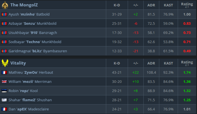 ФОТО. Статистика матча Vitality против The Mongolz: