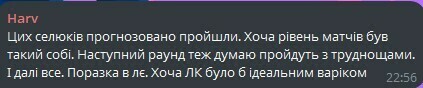 Harv: Этих селюков прогнозируемо прошли. Хотя уровень матчей был таким себе. Следующий раунд тоже думаю пройдут с трудом. И дальше все.