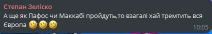 Степан Зеліско: А еще если Пафос или Маккаби пройдут, то вообще пусть дрожит вся Европа 🤣🤣🤣