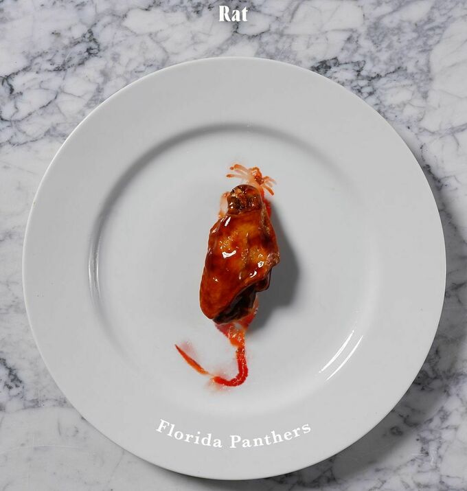 Курица «Флорида Пантерз» украшала тарелку с нарисованными в соусе хвостом и усами и надписью «Крыса».