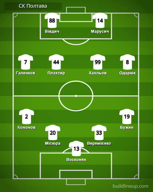 СК «Полтава»: Восконян – Кононов, Мисюра, Веремиенко, Бужин – Галенков, Плахтырь, Хахлев (Опанасенко, 73), Одарюк (Савенков, 85) – Вивдыч (Стрельцов, 73), Марусич (Шаповалов, 54).