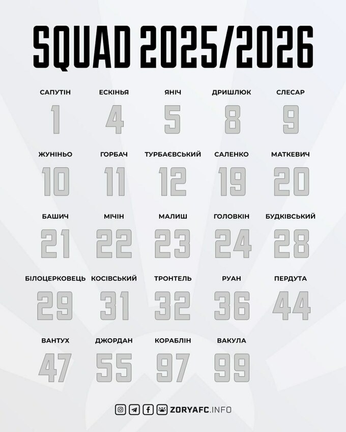 Без Кремчанина и Попары. Заря опубликовала заявку на сезон УПЛ 2025/26