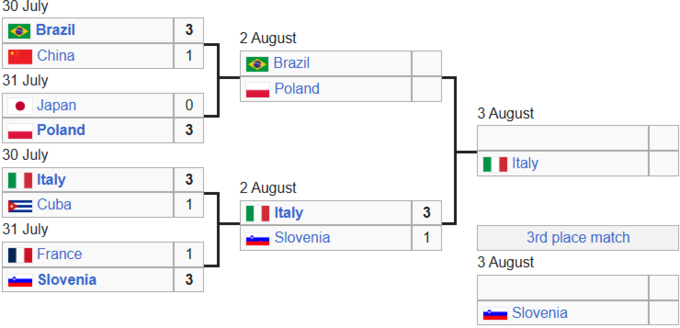 Польша с сухим счетом обыграла прошлогодних финалистов турнира, команду Японии. После близкого матча на групповом этапе и очень близких первых сетов, где поляки оказались сильнее в конце, азиатская команда развалилась в последнем раунде, чем помогла бразильцам пробиться в полуфинал.