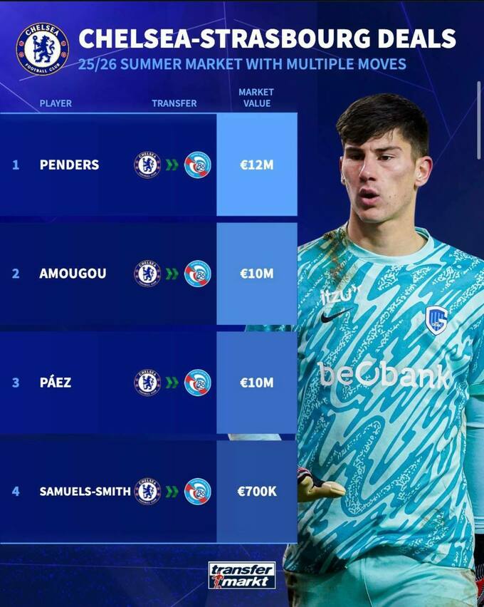 В течение летнего трансферного окна 2025 года лондонский «Челси» продал французскому «Страсбургу» четырех игроков на общую сумму около 33 миллионов евро.