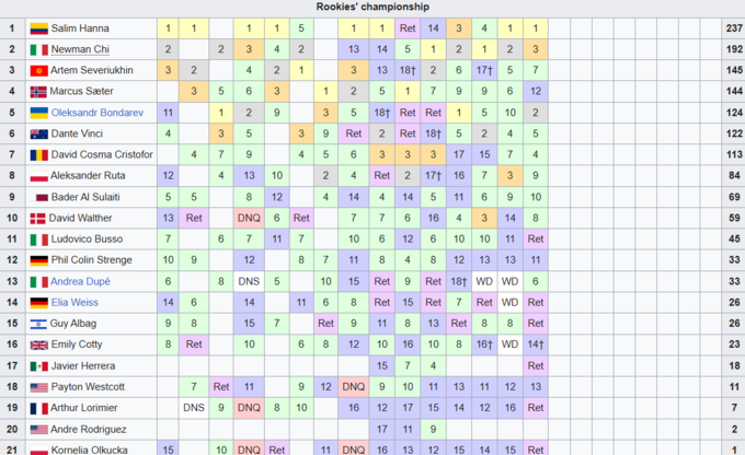 Кроме того, украинец стал вторым в зачете новичков, подтвердив стабильный прогресс и конкурентную скорость среди дебютантов серии.
