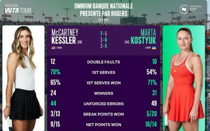 Помимо Кесслер, Марта в Монреале также прошла Маркету Вондроушову и Дарью Касаткину. Все три поединка украинская теннисистка выиграла в трех партиях и в каждом проигрывала первый сет.