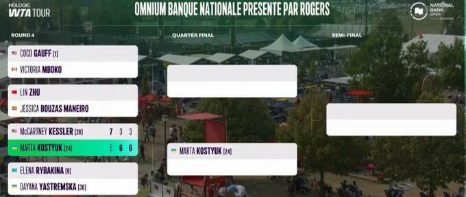 Вторая ракетка Украины Марта Костюк (WTA 28) пробилась в 1/4 финала хардового турнира WTA 1000 в Монреале (Канада)!