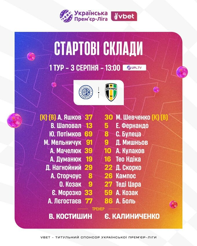 В воскресенье, 3 августа, в 13:00 состоится матч 1-го тура Премьер-лиги Украины 2025/2026, в котором сыграют «Кудровка» и «Александрия».