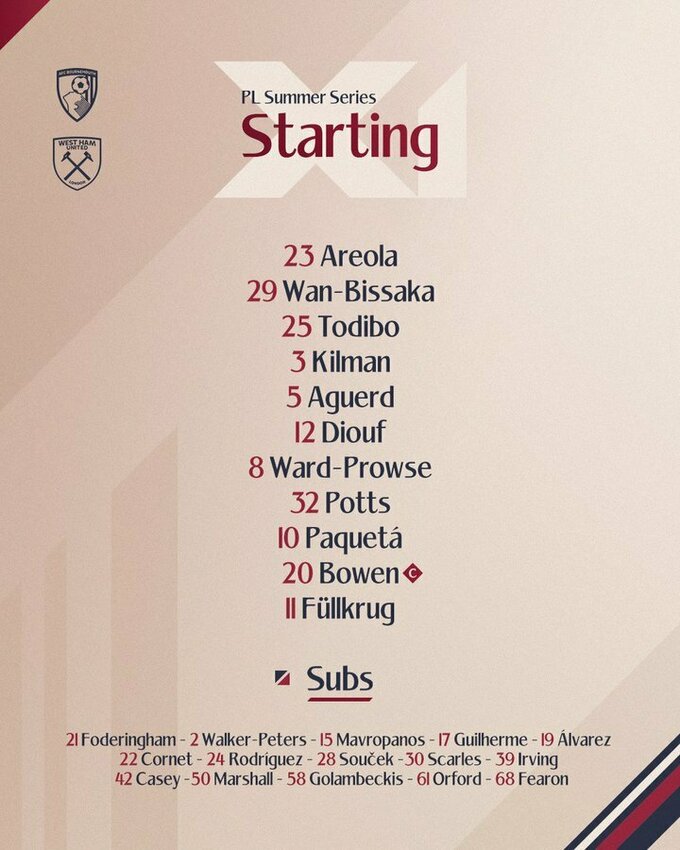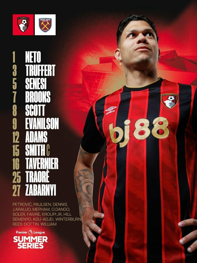 В воскресенье, 3 августа, состоится матч Premier League Summer Series между «Борнмутом» и «Вест Хэмом».