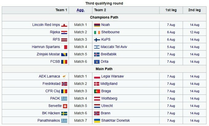 Пары Q3 Лиги Европы, 7 и 14 августа