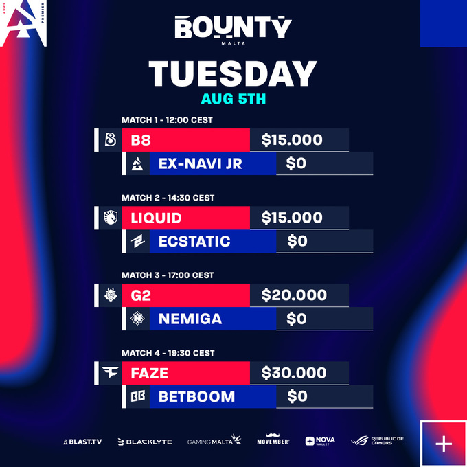 - 5 августа 13:00 по Киеву – B8 против FUT Esports (экс-NAVI Junior)