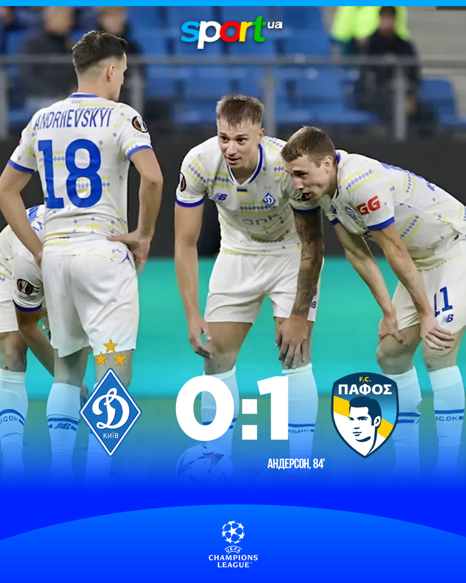 Динамо пропустило гол от Пафоса на 84-й минуте. Забитым мячом отметился бразилец Андерсон Оливейра Силва.