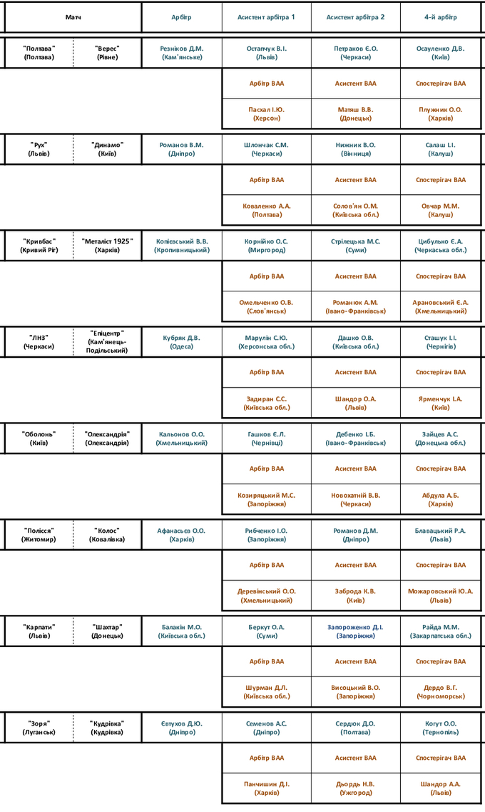 Комитеты Украинской ассоциации футбола назначили официальных лиц на 2-й тур УПЛ.