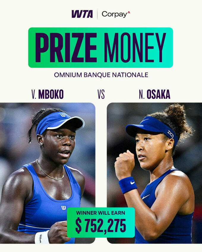 Для Мбоко это будет первый финал на уровне Тура. Осака проведет 13-й решающий поединок и пятый на соревнованиях категории WTA 1000.