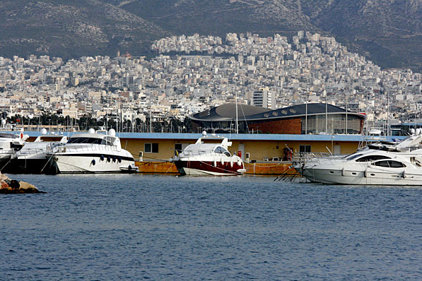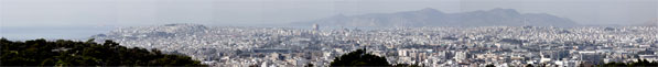 Я, конечно, не профессионал, но попытался слепить вместе около 20 фотографий. В итоге получилась вот такая панорама. Чтобы по достоинству ее оценить, кликните на картинку, и Вам откроется изображение шириной в 5 000 пикселей весом около 700 килобайт. И это я прокрутился, стоя на месте, лишь на 120 из 360-ти градусов. Правда на фото не Афины, а Пиреи - четкой границы между городами, между городом и пригородом, нет и не видно. Города давно слились вместе, причем даже в транспортном смысле - непосредственно от нашего отеля можно сесть на наземную ветку метро и через 20 минут оказаться в Пиреях у самого моря, а также в непосредственной близости от нового стадиона Олимпиакоса.