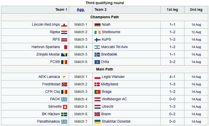 Вечером 7 августа состоялись матчи 3-го раунда квалификации Лиги Европы