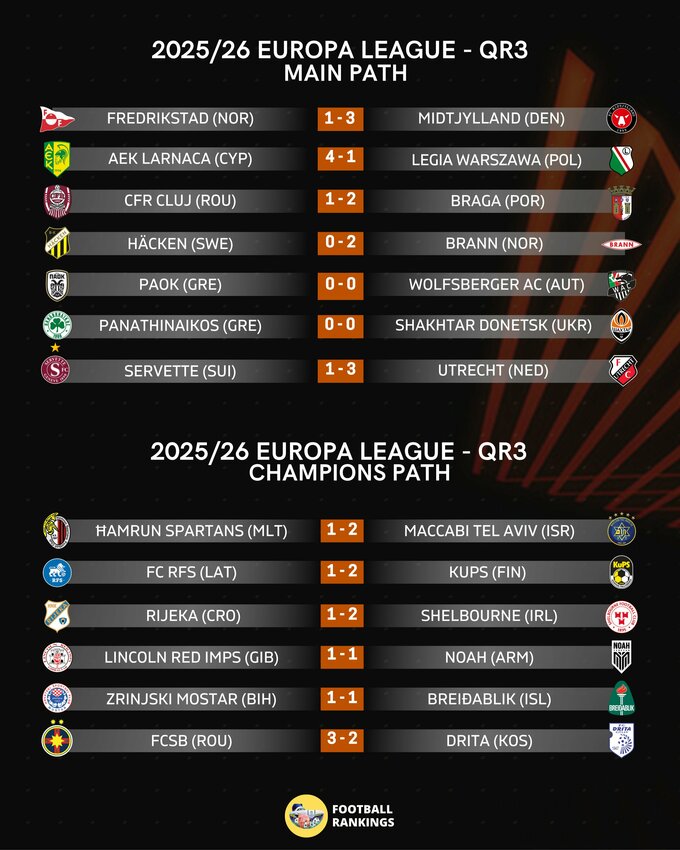 Вечером 7 августа состоялись первые матчи квалификации Q3 Лиги Европы 2025/26.