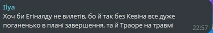 Ilya: Хотя бы Эгиналду не вылетел, и так без Кевина все очень плохо в плане завершения, да и Траоре на травме.