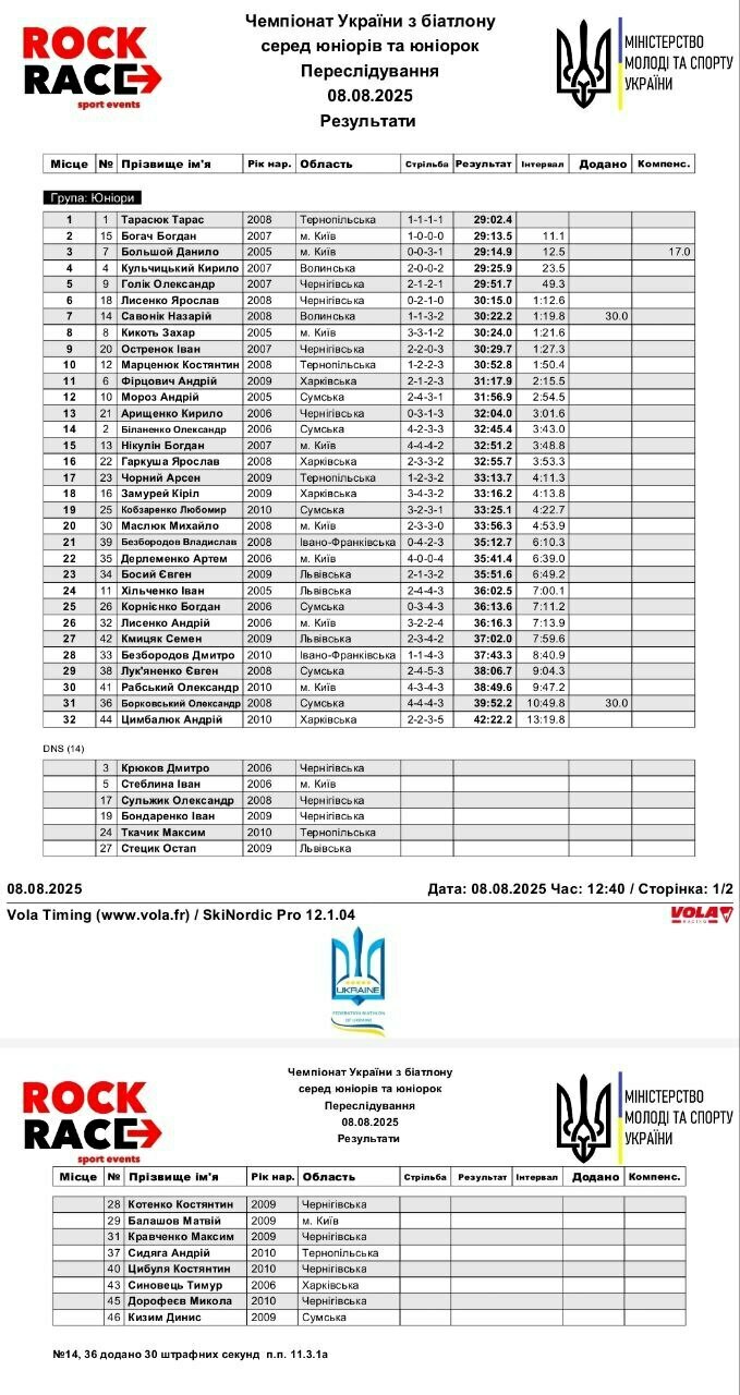 8 августа на чемпионате Украины по биатлону среди юниоров и юниорок прошла гонка преследования среди юниоров.