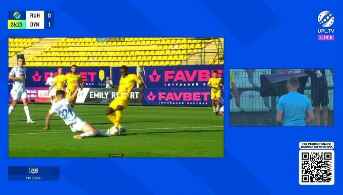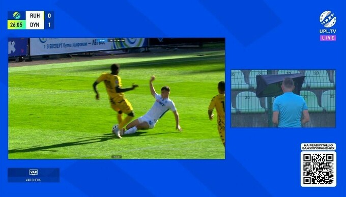 В первом тайме этого противостояния произошел интересный эпизод, из-за которого судья смотрел VAR. Защитник «Динамо» Тарас Михавко нарушил правила в своей штрафной и сбил соперника.
