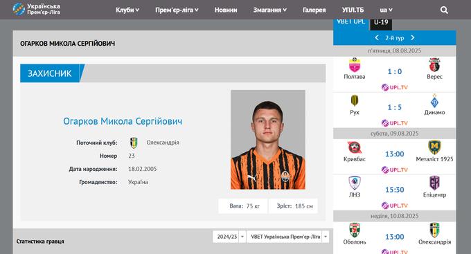 Серебряный призер минувшего розыгрыша украинской Премьер-лиги «Александрия» усилила состав 20-летним центрбеком «Шахтера» Николаем Огарковым.