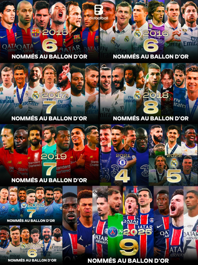 9 из 30 номинантов представляют «ПСЖ». Благодаря этому французский клуб побил рекорд мадридского «Реала», который в 2018 году имел 8 номинантов – наибольшее количество игроков от одного клуба в истории топ-30.