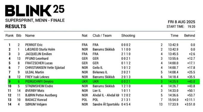 Летний биатлон. Пидручный занял 9-е место на фестивале Blink в Норвегии