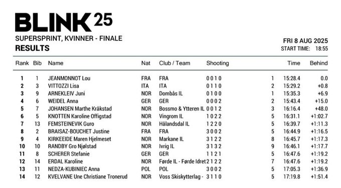 В норвежском Санднесе состоялись финалы суперспринтов на фестивале Blink Festival 2025 по летнему биатлону.