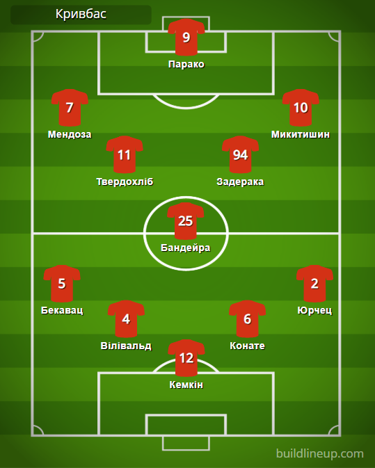 «Кривбасс»: Кемкин – Бекавац (Тьяго, 46), Виливальд, Конате, Юрчец – Твердохлеб, Бандейра, Задерака – Мендоза, Парако (Каменский, 73), Микитишин (Шевченко, 78).