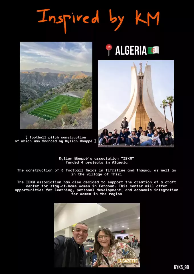 В Алжире фонд Мбаппе поддерживает несколько проектов, включая строительство футбольных полей в Тифритине и Тагме, а также создание ремесленного центра в Ферауне, направленного на помощь домохозяйкам. Эти инициативы подчеркивают более широкий подход фонда к развитию спорта и социальной интеграции.