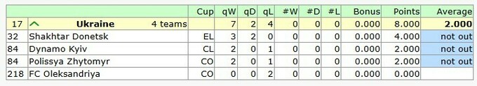 У ближайших конкурентов за эту еврокубковую неделю были следующие успехи (по сравнению с +0,375 для Украины):