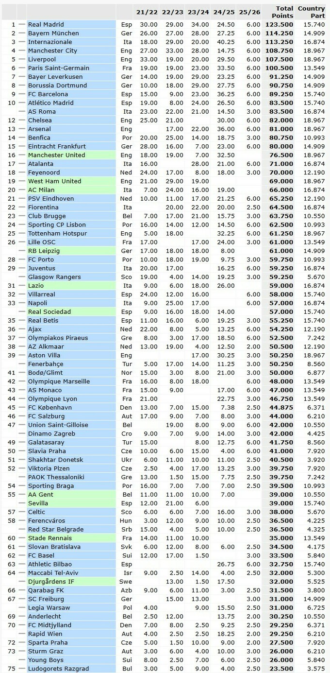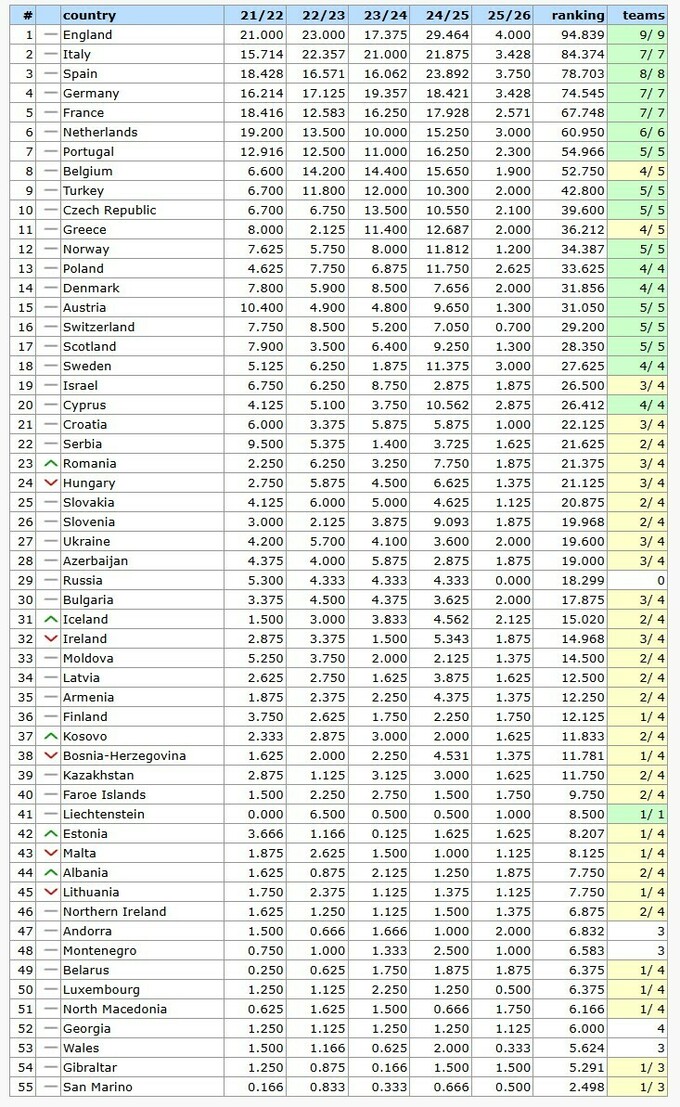 Украине нужно подняться как минимум на 22-е место, чтобы чемпион УПЛ начинал не с первого раунда квалификации ЛЧ (как будет в евросезоне 2026/27), а со второго (как сейчас в сезоне 2025/26).