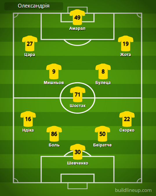 «Александрия»: Н. Шевченко – Ндика, Боль, Беиратче (Огарков, 86), Скорко – Мышнев, Шостак (Фернандо, 70), Булеца (Жонатан, 70) – Цара, Амарал (Кулаков, 59), Жота (Хуссейн, 59).