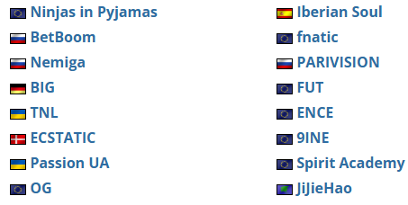 Единственным коллективом из топ-20 рейтинга VRS среди участников закрытой квалификации станет Ninjas in Pyjamas. Подопечные Марко «Snappi» Пфайффера постараются завоевать одну из четырех путевок, доступных на этой стадии, после неудачного выступления на BLAST Bounty Season 2, где европейская команда вылетела уже после первого матча, уступив paiN.