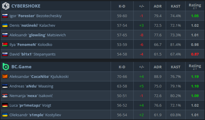 Решающим выдался Ancient, все легко там прошло для BC.GAME 13:8. Александр «s1mple» Костылев отыграл там нестабильно, 10 киллов при 10 смертях и 1.03 рейтинга.
