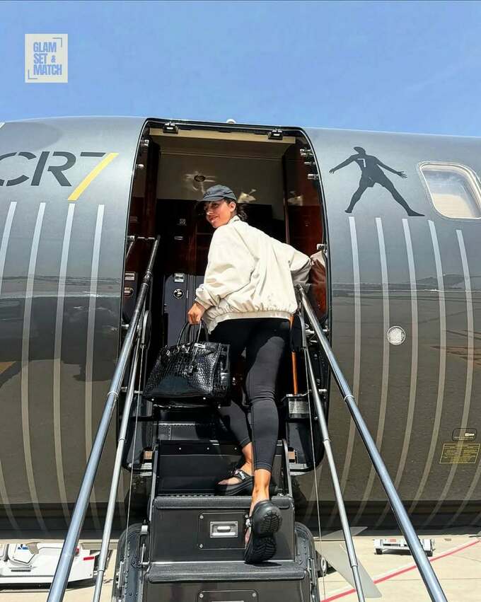31-летняя Джорджина Родригес, гражданская жена Криштиану Роналду, опубликовала серию новых снимков, сделанных на фоне частного самолёта CR7 Bombardier Global Express 6500 стоимостью 58,25 миллиона долларов.